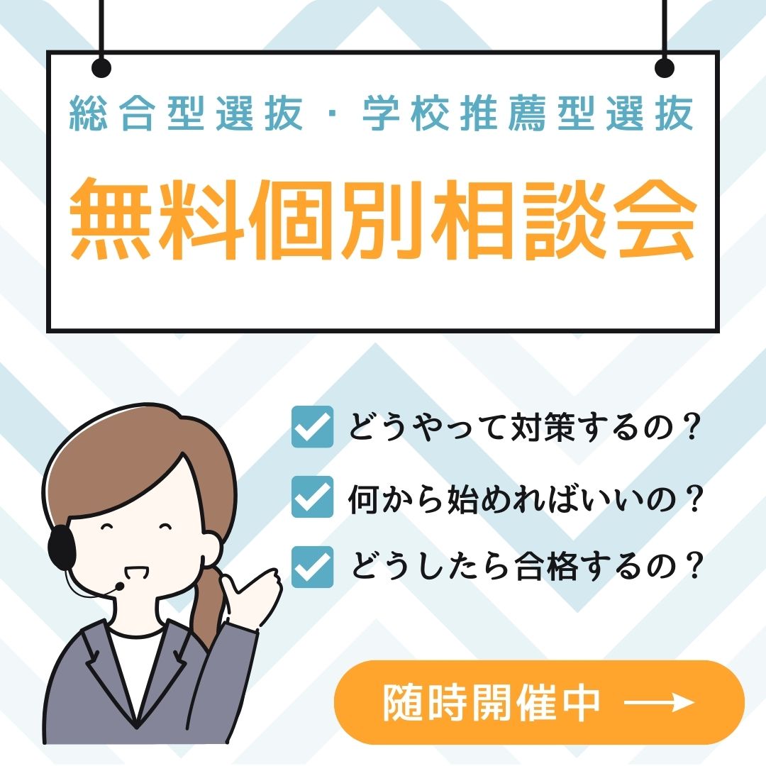 総合型選抜・学校推薦型選抜について、各大学の、さらには各学部学科の対策指導については、潜龍舎代表がひとりひとり個別にご相談を受けさせてもらっています。随時、オンラインにてご面談をさせていただいており、ご相談は無料ですので、下記フォームよりお申込みください。